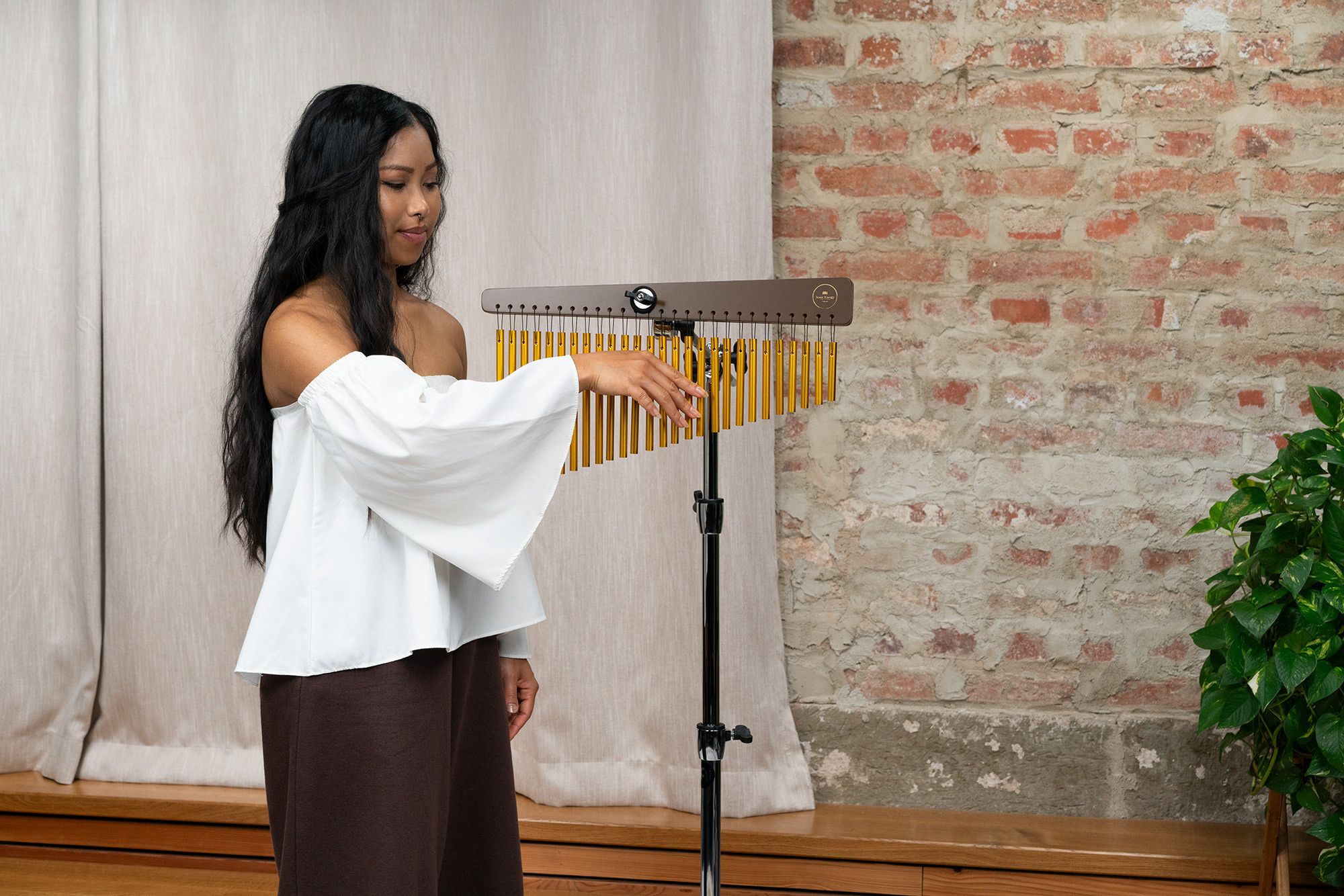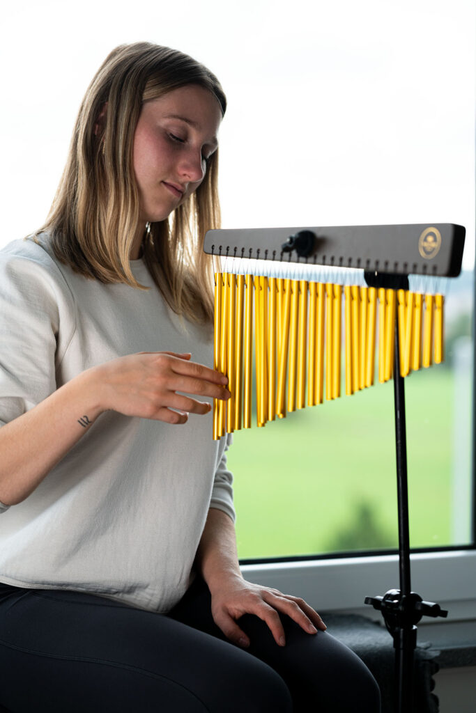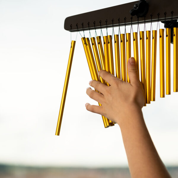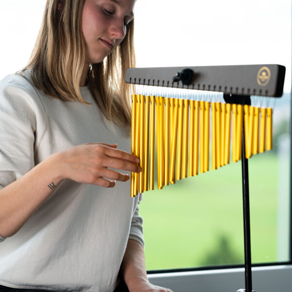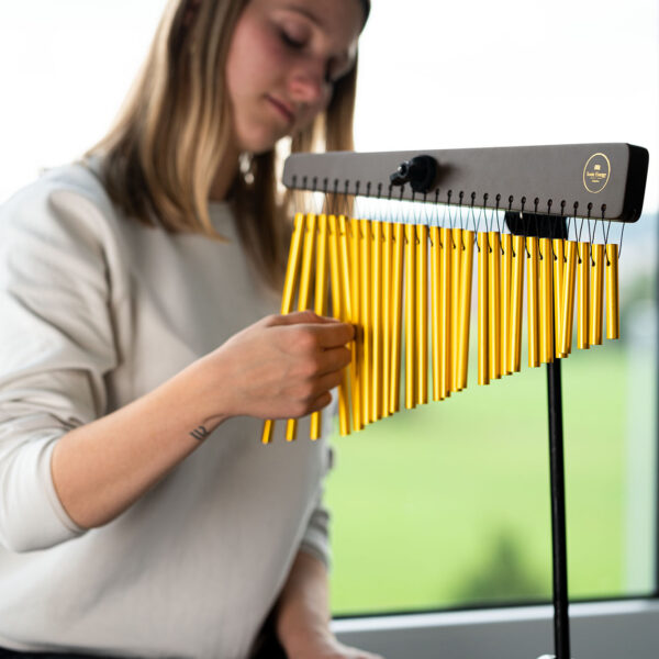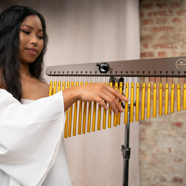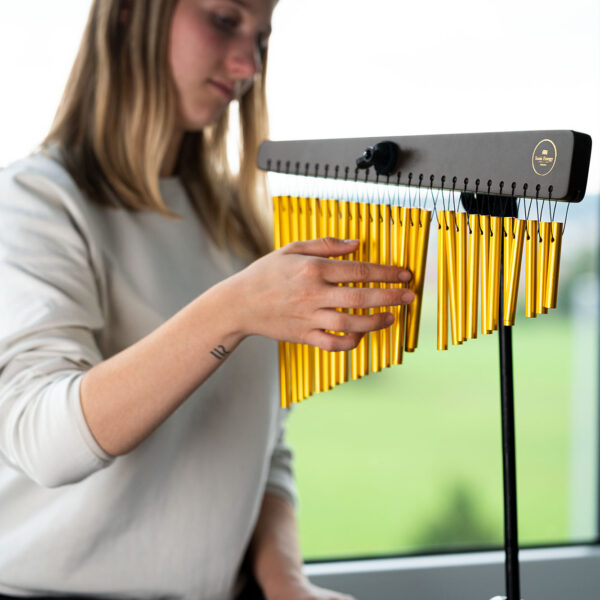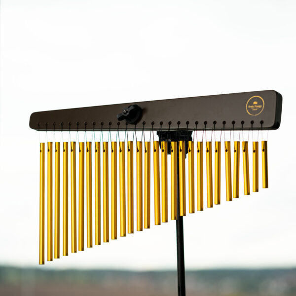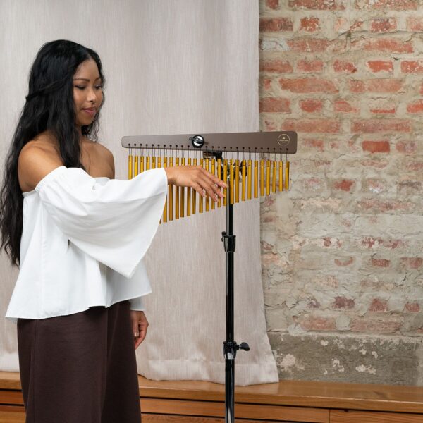 Il Meinl Sonic Energy Chime è uno strumento di alta qualità che produce un suono ricco e coinvolgente, costruito con materiali pregiati presenta una struttura in legno di jamjuree rifinito in noce e 27 barre di alluminio anodizzato dorato. I suoi toni cristallini e risonanti creano un’atmosfera serena rendendolo perfetto per arricchire pratiche di meditazione, yoga o terapia del suono.