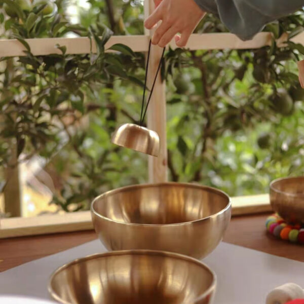 Quando vengono percosse o strofinate dolcemente, le campane rilasciano un suono affascinante, multistrato e colorato che risuona profondamente nell'anima. Su un ricco tono fondamentale, emergono intere cascate di overtones canori che fluttuano liberamente nello spazio e si dispiegano all'interno del corpo. Una volta che il suono inizia a vibrare, non si ferma più; anche un minuto dopo, si può ancora sentire un morbido riverbero.