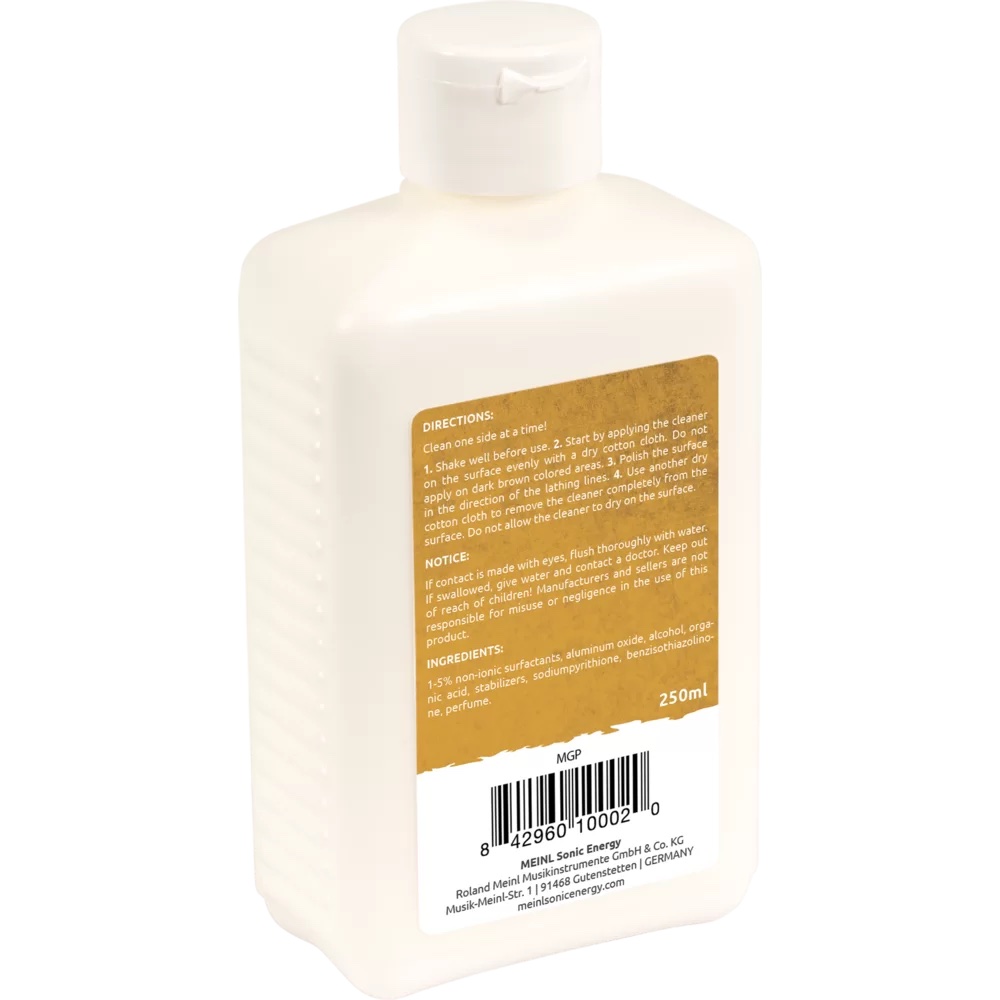 Il Gong Polish Meinl Sonic Energy è progettato esclusivamente per pulire la superficie di un gong. È una combinazione di due detergenti: un detergente liquido concentrato e l’emulsione originale per lucidatura Meinl. Pulisci un lato alla volta! Agita bene prima dell'uso. Inizia applicando il detergente in modo uniforme sulla superficie con un panno asciutto di cotone. Non applicare sulle aree di colore marrone scuro. Lucida la superficie seguendo la direzione delle linee di tornitura. Utilizza un altro panno asciutto di cotone per rimuovere completamente il detergente dalla superficie. Non lasciare asciugare il detergente sulla superficie.