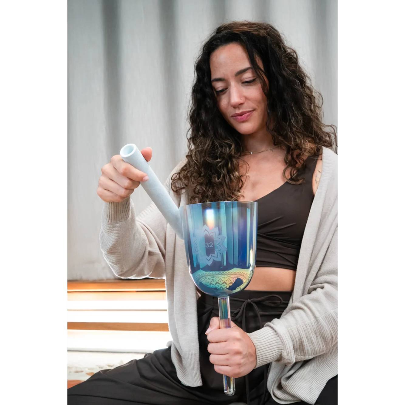 Le campane Meinl Sonic Energy Essence Crystal Singing Bowls sono realizzate in quarzo di elevata purezza per creare un'aura piacevole con il loro suono e il loro design. Il loro tono duraturo si diffonde verso l'esterno picchiettando o sfregando delicatamente, riempiendo l'ambiente circostante con un tono etereo e un'energia positiva calmante. Sono caratterizzate da un suono distintamente chiaro, ricco e profondo che può trasportare chi le suona e chi le ascolta in uno stato di rilassamento. Questi strumenti sono leggeri e facili da tenere in mano. Con la loro forma intricata realizzata a mano e la loro accordatura specifica, le campane possono variare leggermente in altezza per essere perfettamente intonate. È possibile utilizzarle per una varietà di scopi: terapia di rilassamento, guarigione dei chakra, meditazione, fisioterapia, terapia del suono, yoga, regolazione dello stato emotivo o anche per decorare la stanza. Questa campana in cristallo è accordata a 432 Hz, spesso chiamata "tonalità naturale" per la sua risonanza con la natura e il corpo umano. Molti credono che questa frequenza favorisca un senso più profondo di rilassamento e armonia.