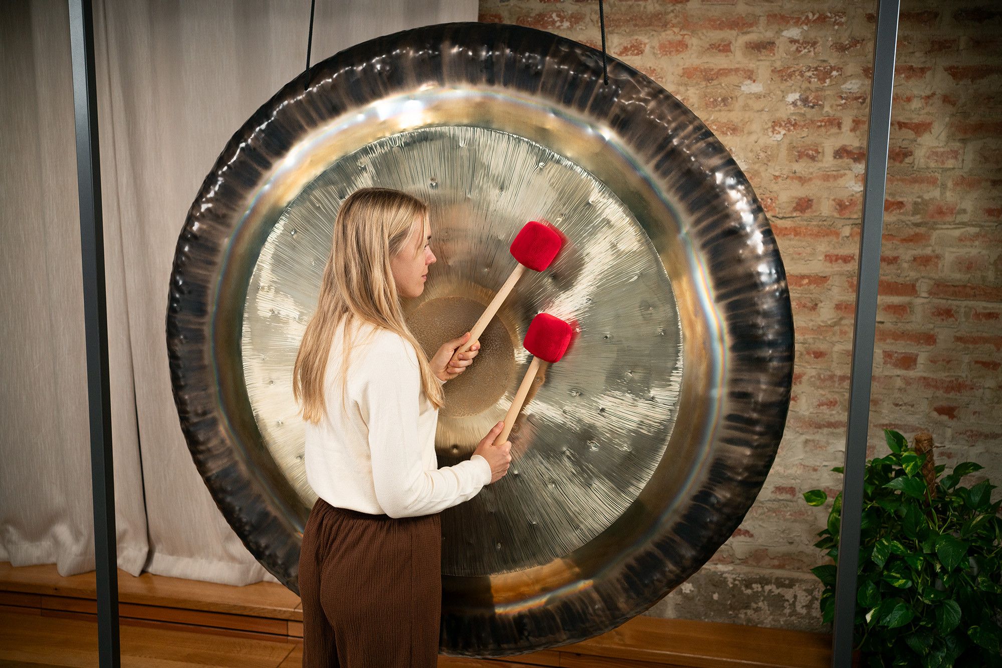 I Giant Tam Tams di Meinl Sonic Energy sono capolavori realizzati tradizionalmente a mano in Germania secondo la tradizione europea nella creazione di gong, vengono dedicate molte ore di lavoro manuale alla lavorazione del metallo ed è così che ottengono il loro tono unico rilassante e atmosferico. Il centro di questi gong presenta numerosi colpi di martello sottili ed è leggermente infossato nella superficie, inoltre è raschiata verso l'esterno a forma di stella e segnata da grandi e distintivi colpi di martello. Questi straordinari strumenti soddisfano le più alte esigenze sonore di praticanti del suono, studi di meditazione sonora e orchestre di primo livello. La loro enorme grandezza e potenza lasceranno ogni ascoltatore stupefatto e meravigliato