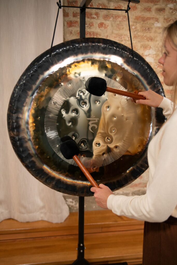 I Gong Chakra di Meinl Sonic Energy sono veri e propri capolavori artigianali realizzati in Germania, ogni gong è sintonizzato su una frequenza specifica basata sui calcoli dellì"Ottava Cosmica" di Hans Cuosto, vengono lavorati direttamente a martello così da offrire un estetica accativante, un suono caratteristico e unico fondamentale per risvegliare i sensi. Possiamo trovare un simbolo che rappresenta il chakra di ogni ùgong che grazie a una tecnica speciale di sabbiatura viene fuso al centro dello strumento.