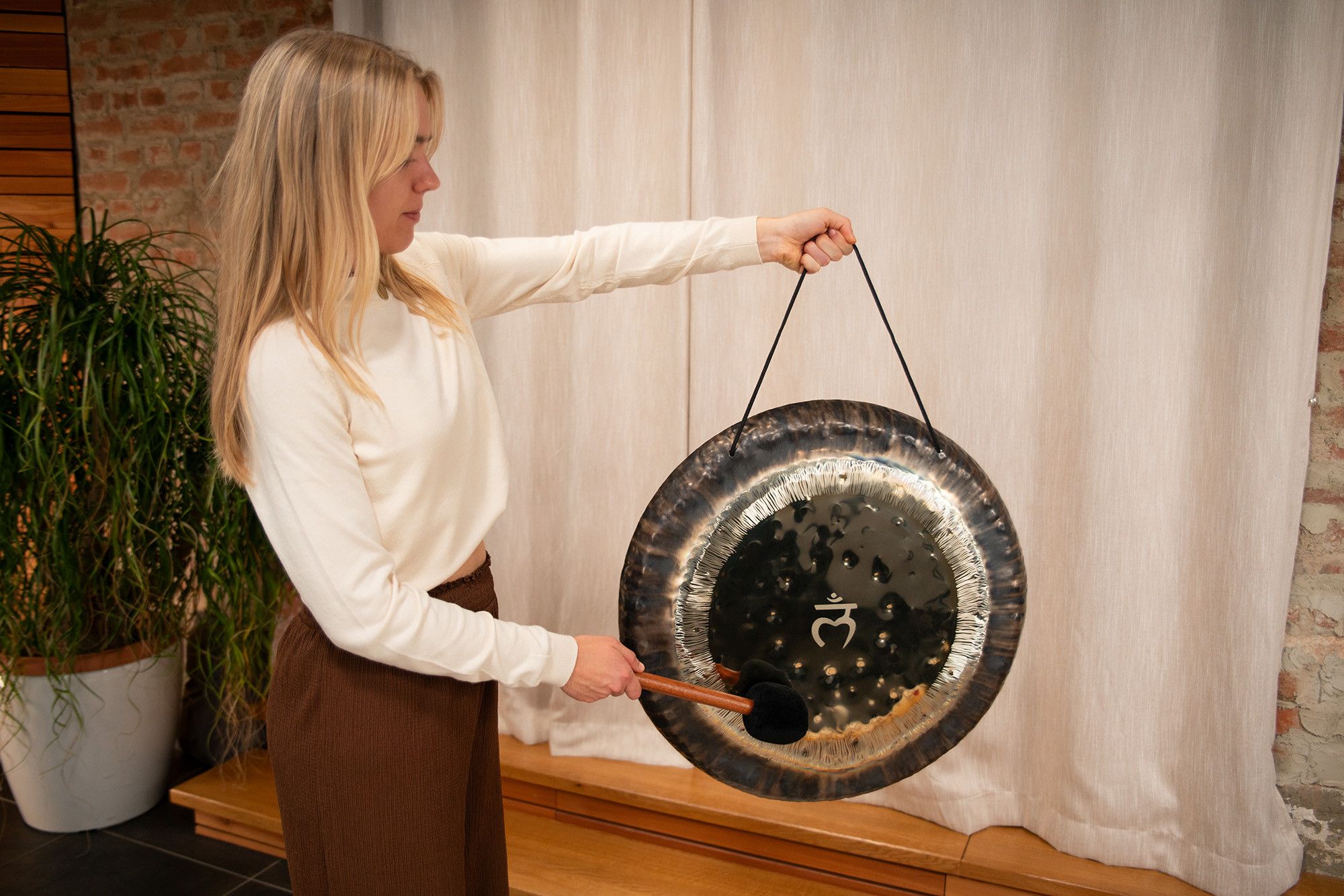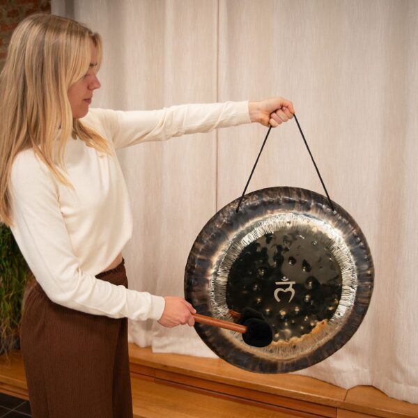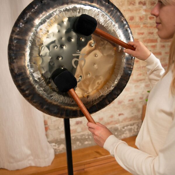Il gong è fornito completo di guanti protettivi, ideali per maneggiarlo senza lasciare impronte, e di una cover in tessuto resistente, pensata per proteggerlo e riporlo in sicurezza dopo ogni utilizzo