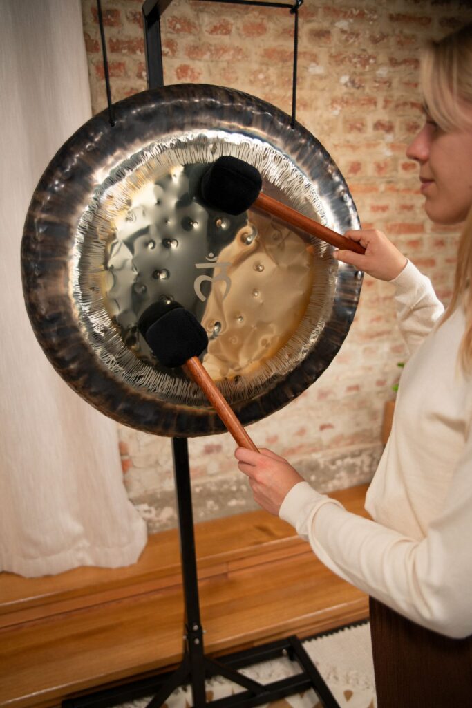 I Gong Chakra di Meinl Sonic Energy sono veri e propri capolavori artigianali realizzati in Germania, ogni gong è sintonizzato su una frequenza specifica basata sui calcoli dellì"Ottava Cosmica" di Hans Cuosto, vengono lavorati direttamente a martello così da offrire un estetica accativante, un suono caratteristico e unico fondamentale per risvegliare i sensi. Possiamo trovare un simbolo che rappresenta il chakra di ogni ùgong che grazie a una tecnica speciale di sabbiatura viene fuso al centro dello strumento.