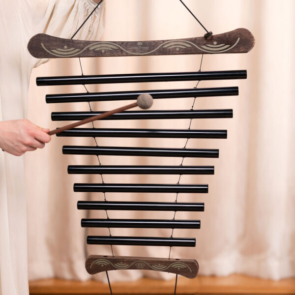 I Meinl Sonic Energy Meditation Flow Chimes sono strumenti di alta qualità perfetti per la meditazione, il rilassamento e la terapia del suono. Suonate i rintocchi con il mazzuolo allegato e fateli roteare per creare un suono sferico e rilassante. I loro toni hanno un effetto calmante e riequilibrante su corpo, mente e anima. I tubi sonori sono appesi a robuste corde di nylon su un supporto in legno