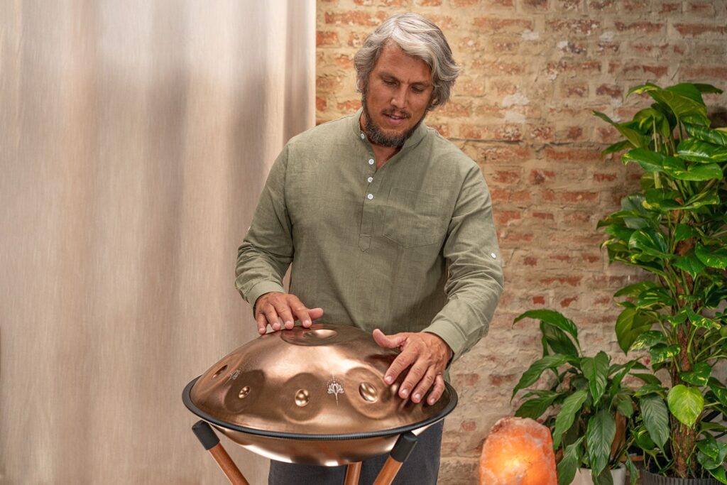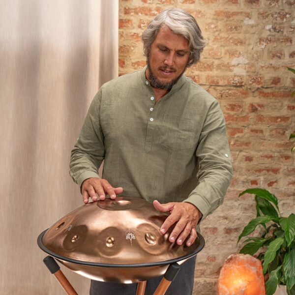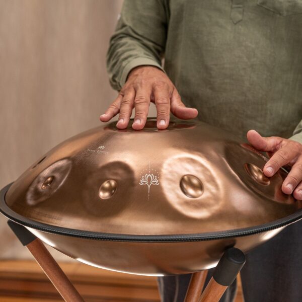 I Sensory Handpan Sonic Energy sono costruiti a mano, singolarmente, con acciaio inossidabile di alta qualità , con finitura dorata vintage. Si tratta di un materiale che non teme le intemperie e che tiene l'accordatura nel tempo. Ogni nota completa le altre, traducendosi in un suono rilassante e cristallino. Facili da suonare anche per chi non ha dimestichezza con lo strumento, i Sensory Handpan hanno due fori sonori rivolti verso l'esterno in direzioni opposte per fornire un effetto completamente coinvolgente sia per il musicista che per gli ascoltatori. Inclusi in tutti gli handpan ci sono due tubi sonori rimovibili che consentono di alterare le qualità tonali dello strumento. Il tubo più lungo è posizionato nel foro rivolto verso le note più basse dell'handpan, e il tubo più corto rivolto verso le note più acute.
