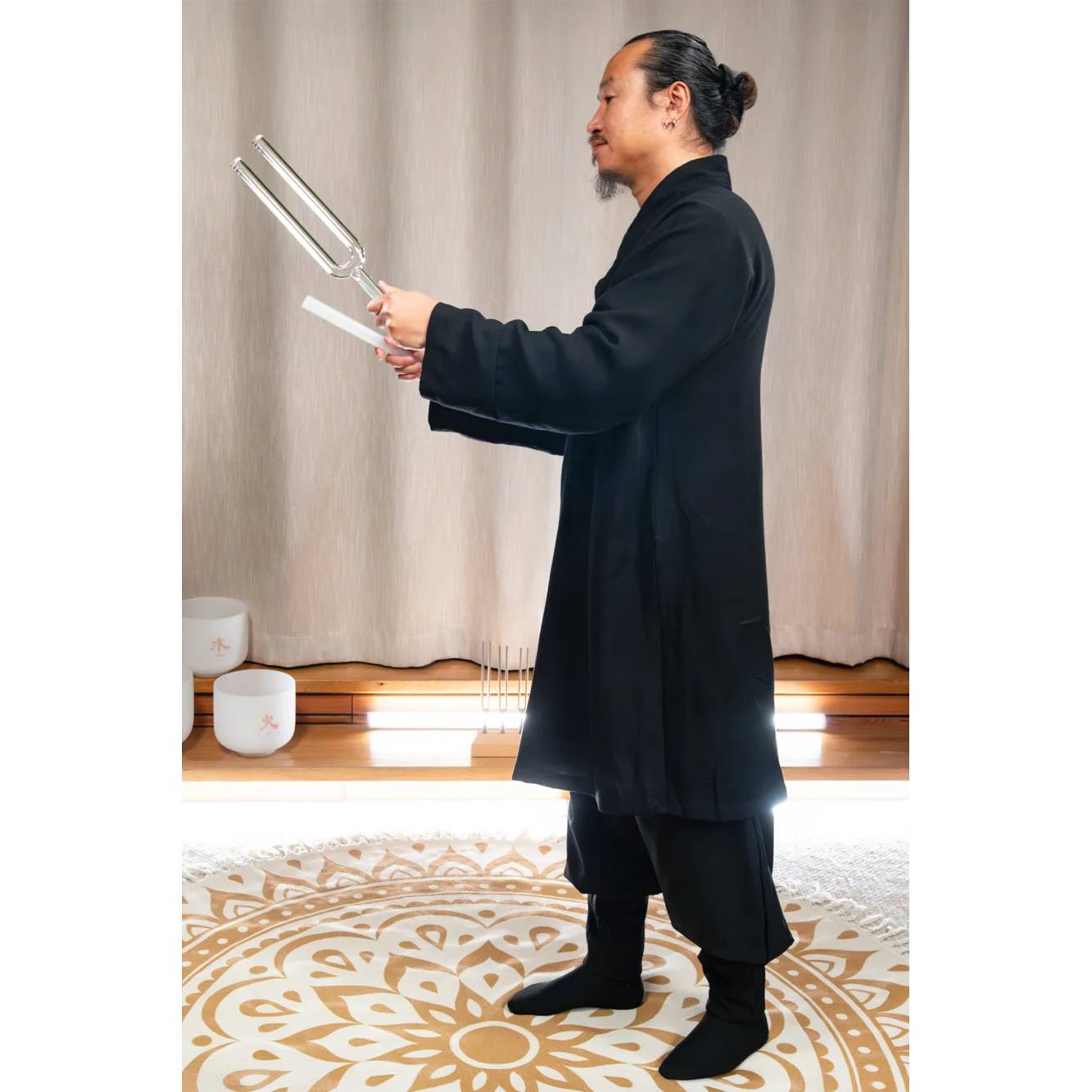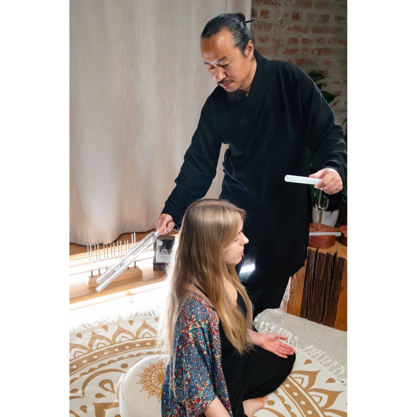 I diapason di cristallo TCM di Meinl Sonic Energy sono stati sviluppati con Woodie Wulin, sacerdote taoista ed esperto di terapia del suono TCM. Ispirati alla saggezza della medicina tradizionale cinese, questi diapason sono progettati per armonizzare il sistema energetico del corpo, bilanciare lo yin e lo yang e favorire il flusso naturale del qi. Questi diapason sono collegati allo yin e allo yang e costituiscono uno strumento olistico per la terapia del suono, il rilassamento e la cura di sé. Applicati a punti di agopuntura selezionati, possono aiutare a rilasciare la tensione, ripristinare l'equilibrio e approfondire la connessione tra corpo e mente. Yin: ti riporta a te stesso. Aiuta a ritrovare la calma e la concentrazione quando l'energia sembra disconnessa o le emozioni sono intense.  Yang: aumenta l'energia centrale e la vitalità. Da utilizzare quando si avverte freddo, mancanza di energia o demotivazione. I diapason di cristallo TCM si ispirano alla filosofia della medicina tradizionale cinese, non sono un'alternativa medica.