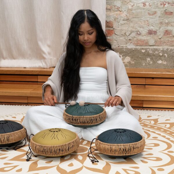 Gli Steel Tongue Drums Meinl Sonic Energy sono strumenti musicali a percussione caratterizzati da un suono melodioso e rilassante, ideali per molteplici contesti. Realizzati in acciaio di alta qualità, sono progettati per offrire una risonanza armonica e un timbro dolce e ricco di sfumature. Le linguette ("tongues") intagliate nella superficie dello strumento sono accordate in specifiche scale musicali, rendendolo accessibile anche a chi non ha esperienza musicale.
