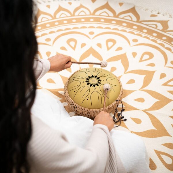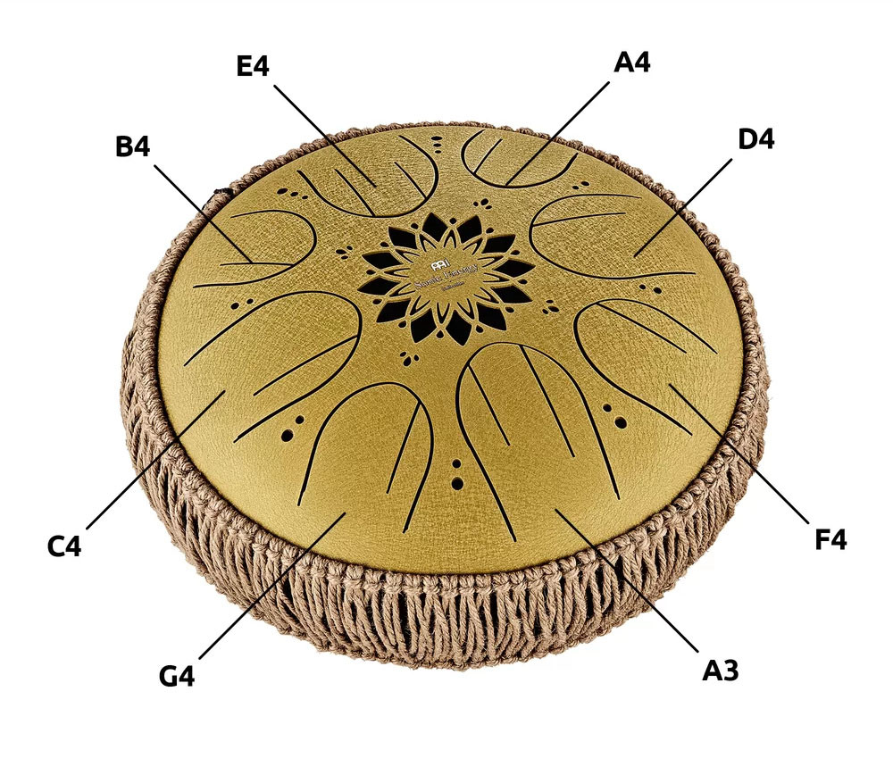 È uno dei pochi tamburi armonici accordati con frequenza 432Hz, ha un suono molto profondo e avvolgente, simile a quello di un handpan