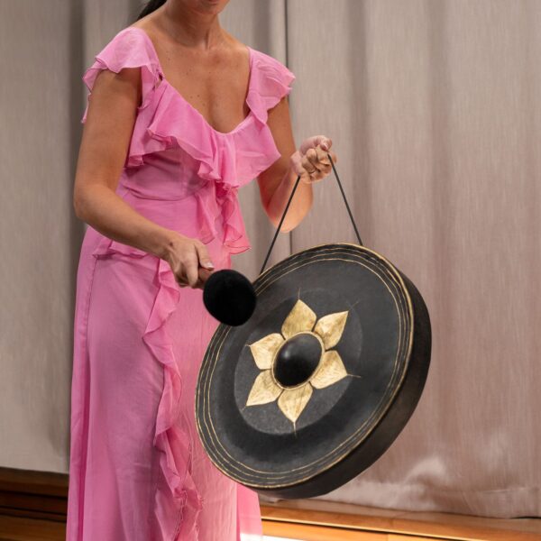 I Gong Thai Meinl Sonic Energy sono una splendida fusione di suono e maestria artigianale, realizzati in Thailandia secondo la tradizione birmana, forgiati in bronzo questi gong producono toni profondi e risonanti, ideali per la meditazione, la terapia del suono e le esibizioni musicali. Ogni gong è lavorato a mano con cura rendendolo unico sia nell'aspetto che nel suono, conferendogli un carattere unico, inoltre è incluso un battente tradizionale che può variare leggermente nello stile, aggiungendo un tocco autentico,realizzato con tessuti provenienti da abiti monastici buddhisti, mentre il nucleo è composto da sacchi di iuta riciclata, sottolineando l’attenzione alla sostenibilità e il significato culturale. I gong possono essere suonati a mano o montati su un supporto offrendo flessibilità per diversi stili di esecuzione e ambienti. Una caratteristica distintiva di questi gong è il boss centrale rialzato, circondato da un elegante motivo floreale intagliato. Gli esperti Mail ci tengono a sottolineare che ogni gong è unico, e potrebbero verificarsi variazioni nei pattern della martellatura a mano e nella colorazione dovute al processo di riscaldamento.