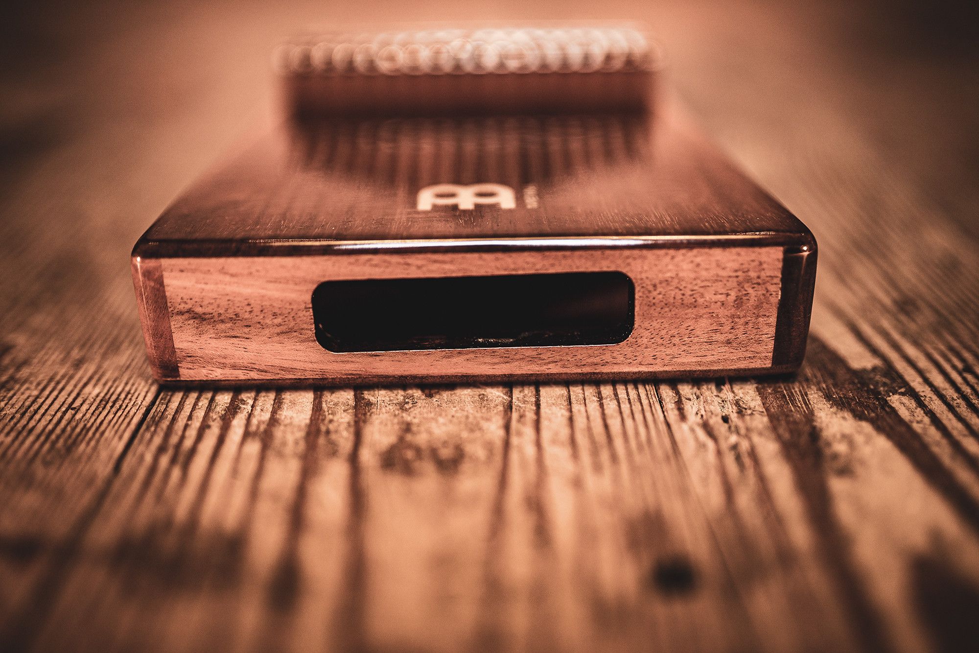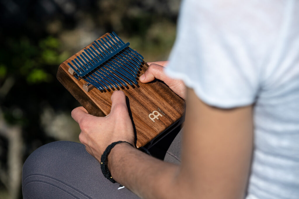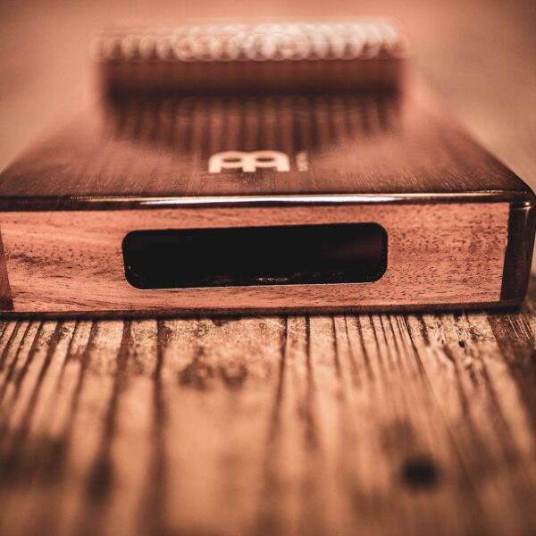 Questa Kalimba ha un foro sonoro orientato verso il corpo, in modo da poter creare un grande effetto wah-wah mentre si suona, semplicemente facendo rimbalzare il corpo della Kalimba sulla pancia, spostando così il suono in modo creativo.