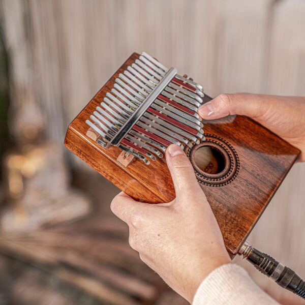 Le Soundhole Pickup Kalimbas sono un'evoluzione moderna dello strumento tradizionale africano kalimba, progettata per amplificarne il suono e renderlo adatto a performance live o registrazioni. Questi strumenti sono dotati di un microfono a contatto o di un pickup integrato nel corpo, che cattura le vibrazioni delle lamelle metalliche e del legno, garantendo una resa sonora naturale e ricca di dettagli. La presenza del soundhole (foro di risonanza) contribuisce a migliorare la proiezione acustica, offrendo un equilibrio tra suono amplificato e timbro tradizionale. Perfette per musicisti che desiderano unire tradizione e innovazione.