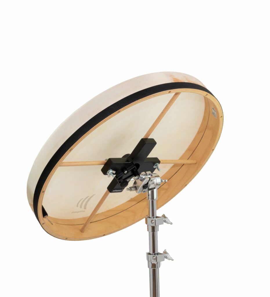 Tutti i tamburi a cornice con una croce al centro possono essere montati con questo supporto, che lascia il tamburo libero di vibrare liberamente