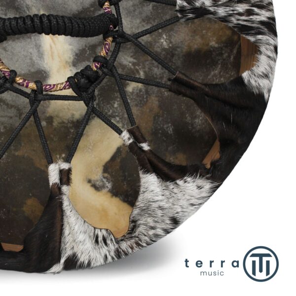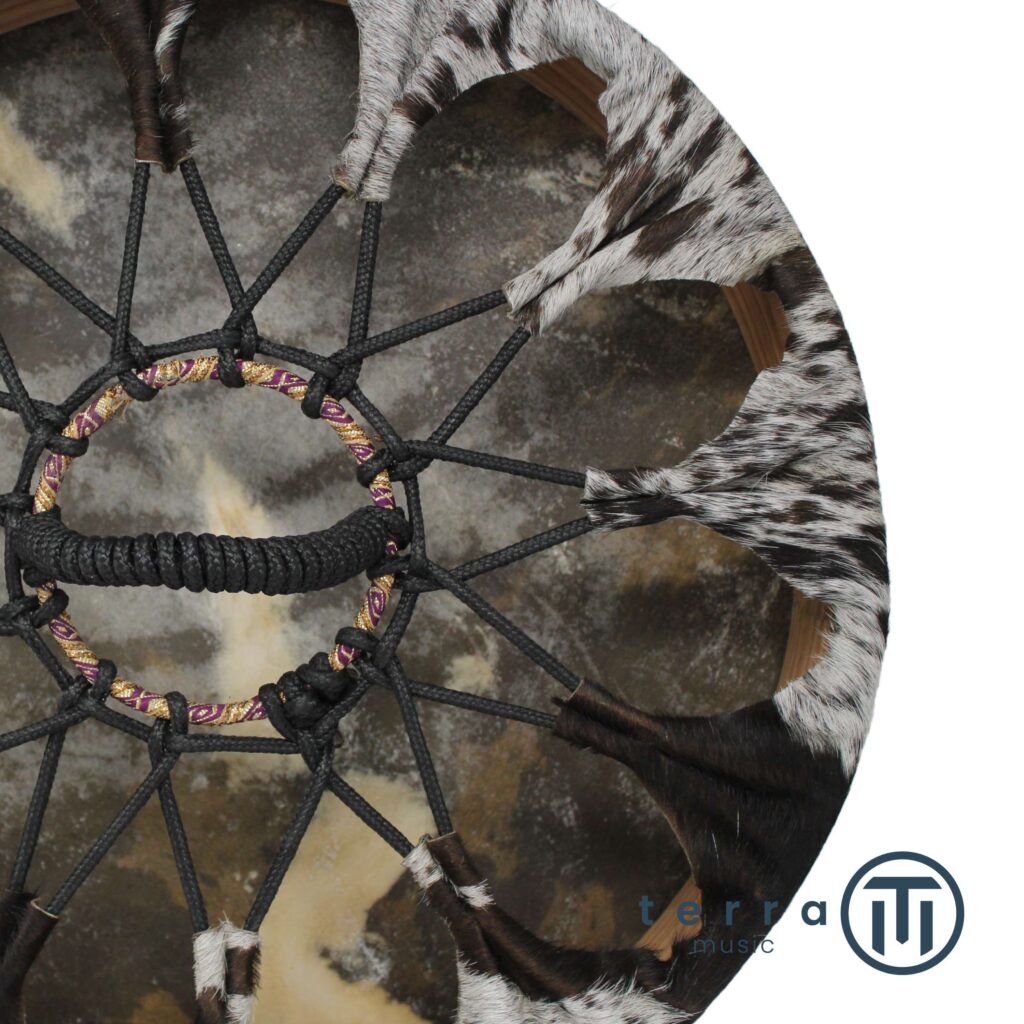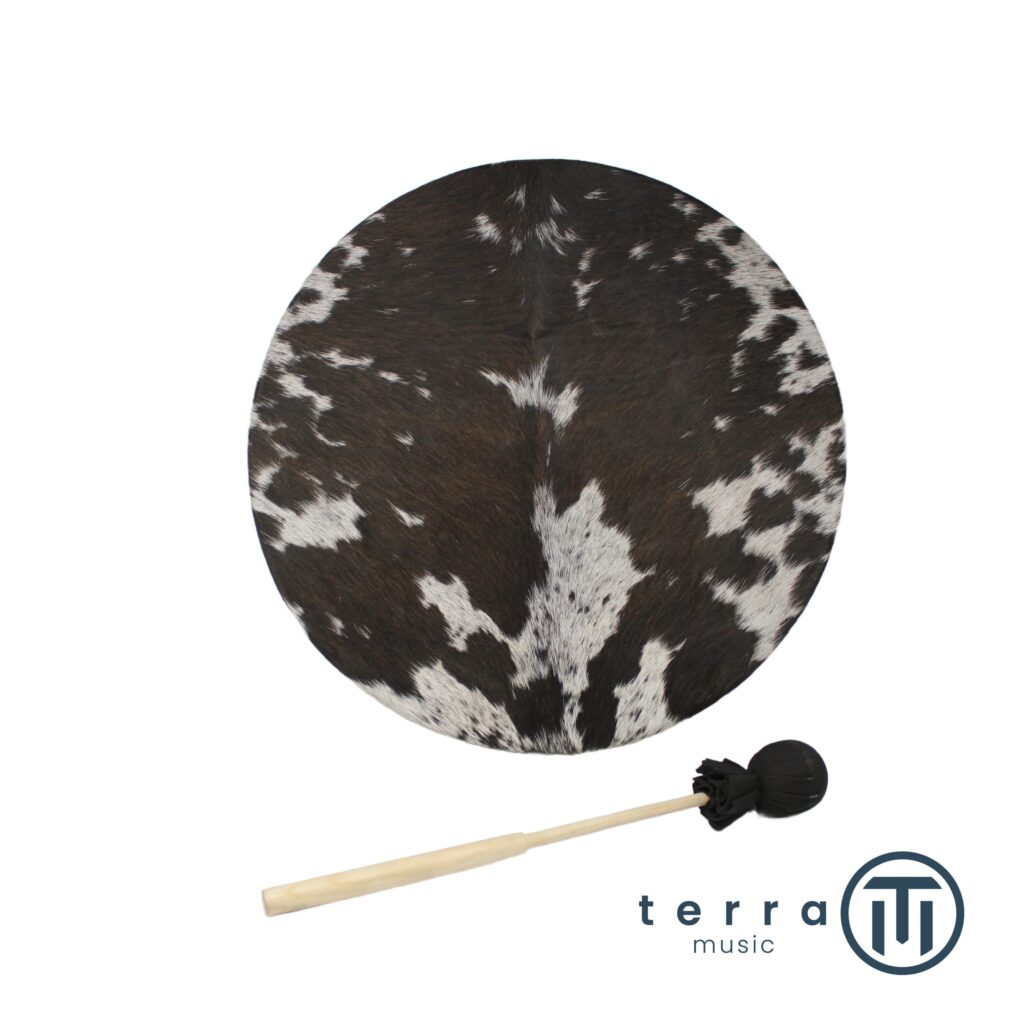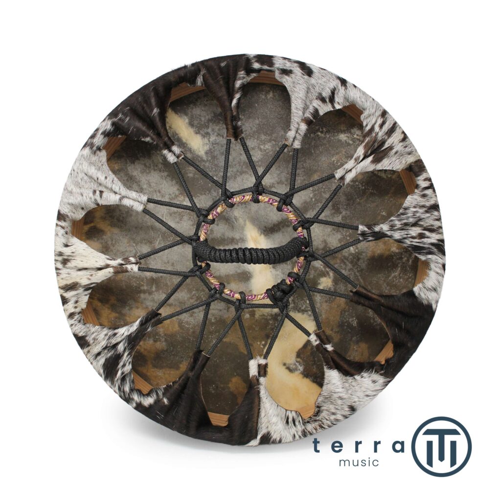 Tradizionalmente, viene costruito con un telaio in legno e una membrana di pelle naturale, spesso decorata con simboli tribali o motivi ispirati alla natura. Ogni tamburo ha un suono unico, influenzato dalla tensione della pelle, dal tipo di legno e dalle dimensioni.