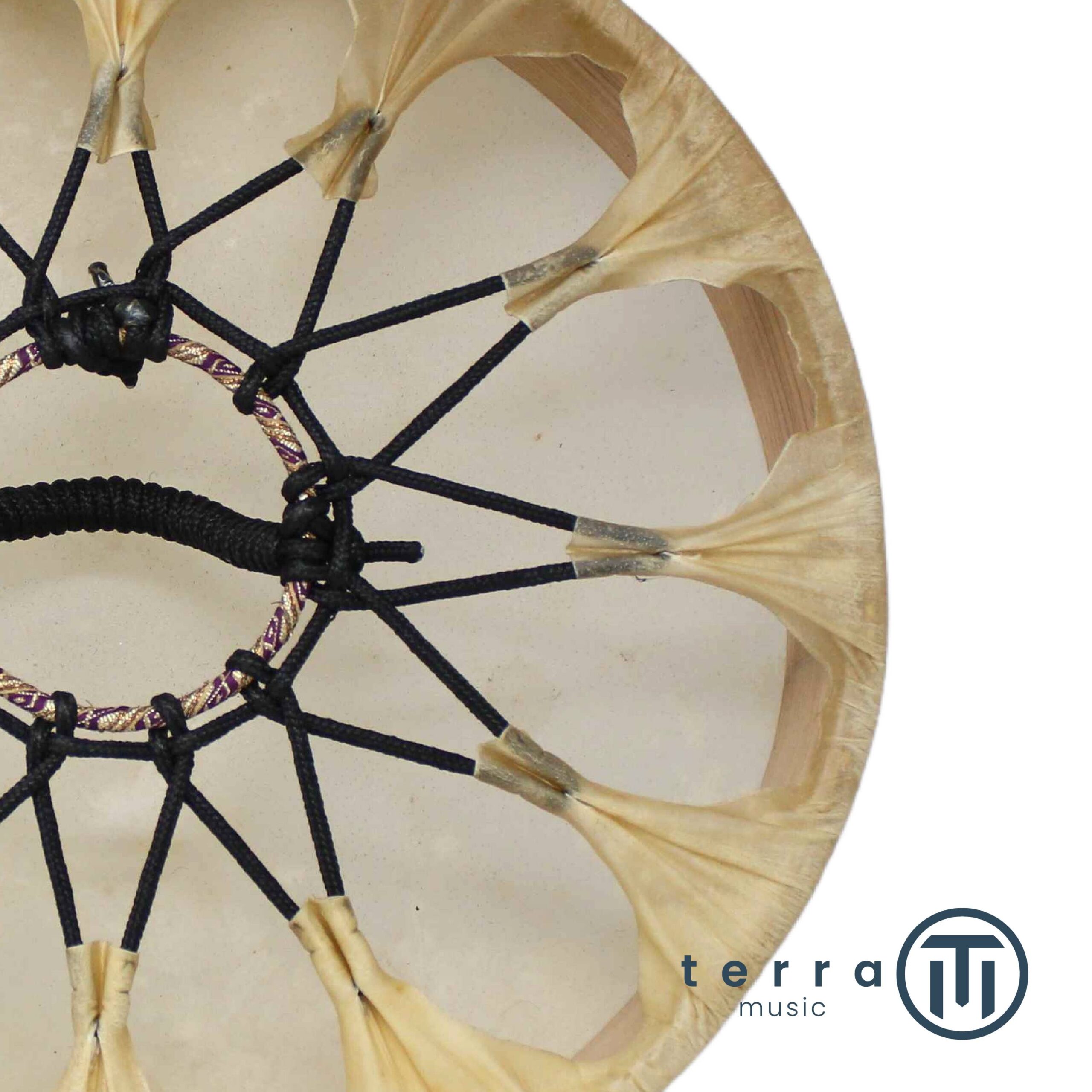 Tradizionalmente, viene costruito con un telaio in legno e una membrana di pelle naturale, spesso decorata con simboli tribali o motivi ispirati alla natura. Ogni tamburo ha un suono unico, influenzato dalla tensione della pelle, dal tipo di legno e dalle dimensioni.